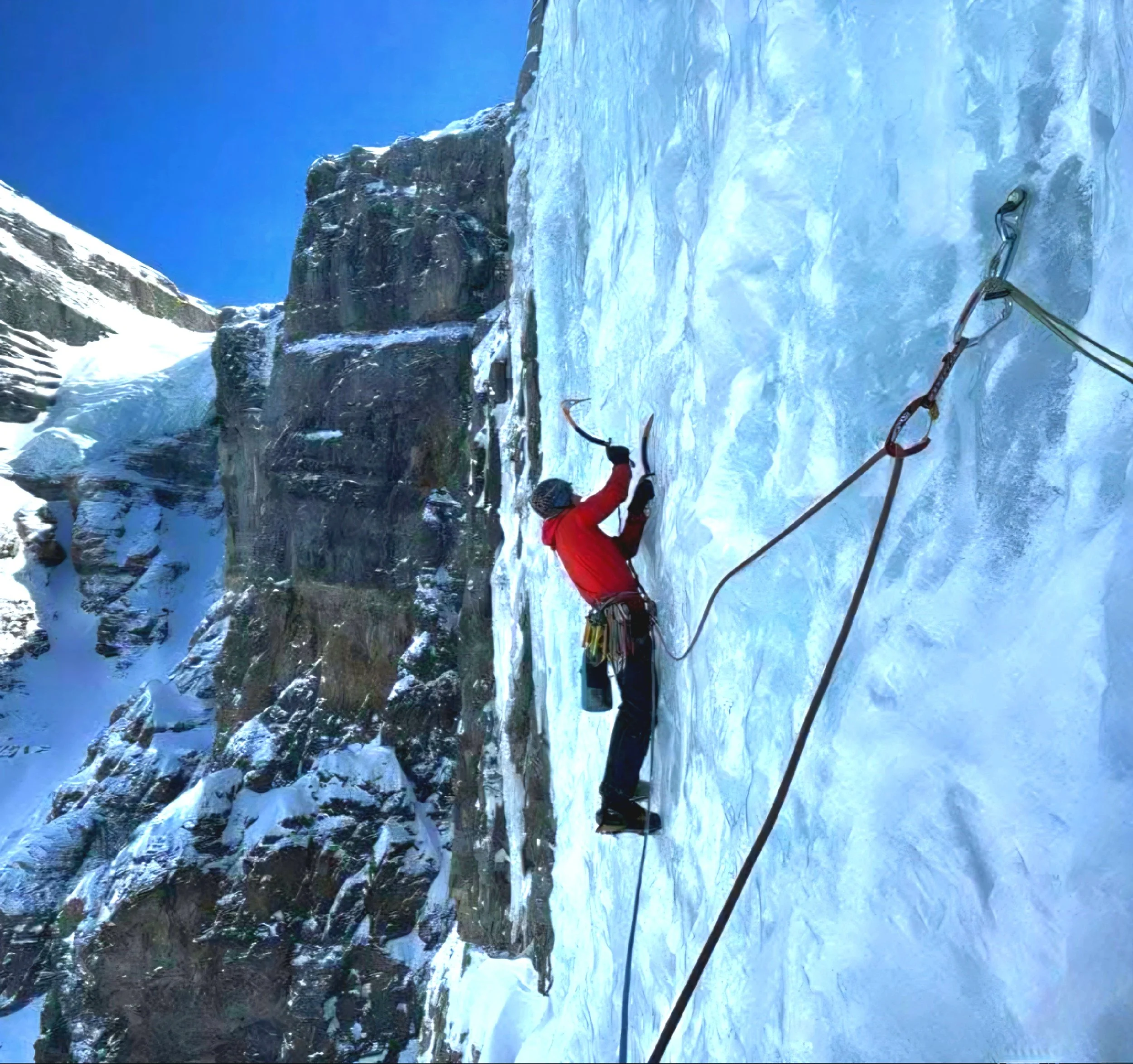 Ferrethawk, 160m M6 WI3+, with James Walter. First attempt with Maarten van Haaren and Jasmin Fauteux